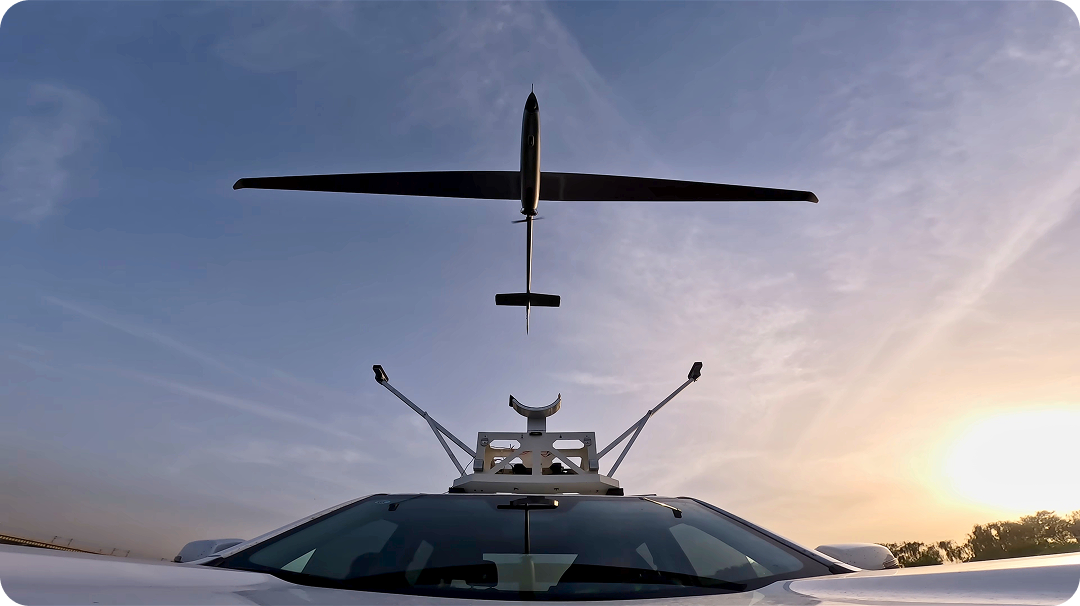 DX60 is a medium-sized fixed-wing ultra-long-endurance UAV with 9.5m wingspan, 70 kg MTOW, and endurance up to 72 hours. It is equipped with highly integrated SATCOM, enabling beyond-visual-range flight control and supporting real-time image transmission within 100 kilometers. It is suitable for long-term surveillance and reconnaissance tasks in large areas such as deserts.