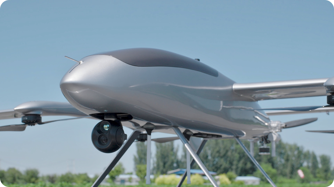 DXVT35 is a VTOL UAV with 3.9m wingspan, 35 kg MTOW, up to 10h endurance and a max range of 900 km. It has a 7 level wind resistance and supports 100km beyond-visual task operation capability. It’s integrated with SATCOM and high-definition EO/IR sensor can provides monitoring and inspection services for long-distance routes such as oil pipelines and highways, and offer on-site image services for disaster assessment.